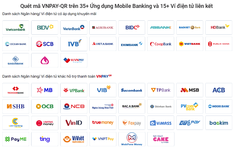 Cổng thanh toán VNPAY là giải pháp thanh toán do Công ty Cổ phần Giải pháp Thanh toán Việt Nam (VNPAY) phát triển. Khách hàng sử dụng thẻ/tài khoản ngân hàng, tính năng QR Pay/VNPAY-QR được tích hợp sẵn trên ứng dụng Mobile Banking của các ngân hàng hoặc Ví điện tử liên kết để thanh toán các giao dịch và nhập mã giảm giá (nếu có)