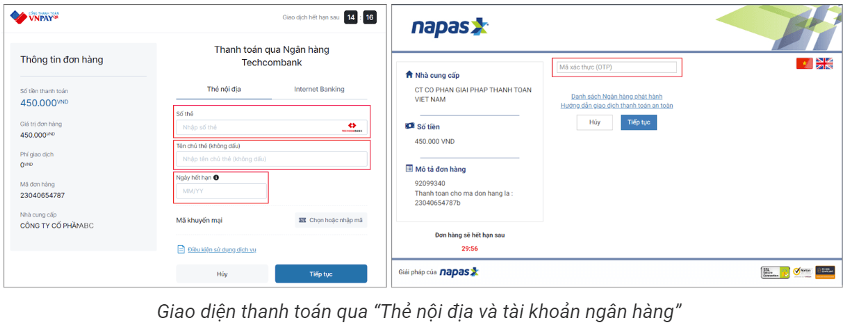 4.2. Phương thức thanh toán qua “Thẻ nội địa và tài khoản ngân hàng”