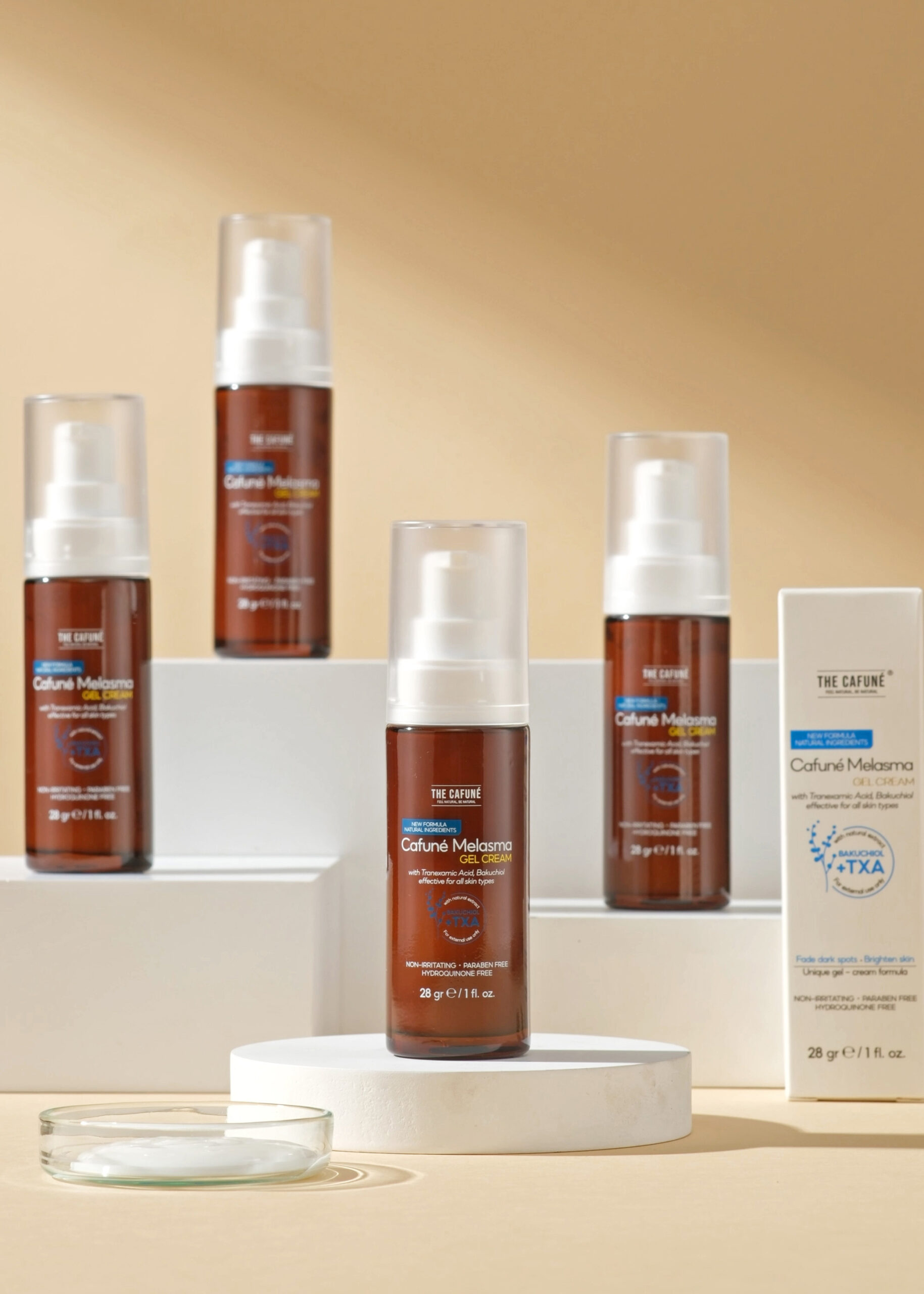 Combo sản phẩm Cafuné giúp làm mờ thâm nám, đều màu da, và bảo vệ da khỏi tác động của ánh nắng mặt trời