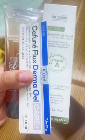 Combo bao gồm 2 sản phẩm chăm sóc da chuyên biệt, hỗ trợ điều trị mụn nhẹ và mụn ẩn. Sản phẩm bao gồm Gel chấm mụn Cafuné Flux Derma Gel và Kem dưỡng ẩm Cafuné Witch Hazel. Bộ sản phẩm này phù hợp cho làn da dầu và da mụn nhạy cảm, giúp giảm mụn, mờ thâm, và dưỡng ẩm cho da.