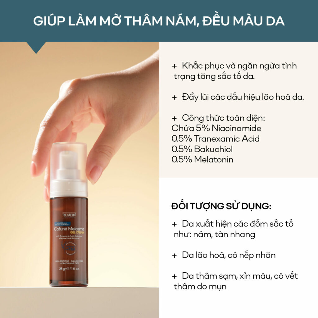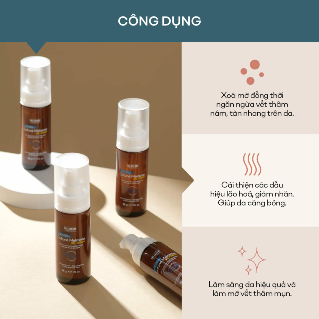 [COMBO MUA 1 NHẬN 2] Kem Làm Mờ Thâm Nám, Dưỡng Trắng Sáng Và Đều Màu Da Tối Ưu Cafuné Melasma Gel Cream 28g – Tặng Dưỡng Chất Serum Giảm Thâm Nám, Tàn Nhang Và Dưỡng Da Sáng Mịn 19ml